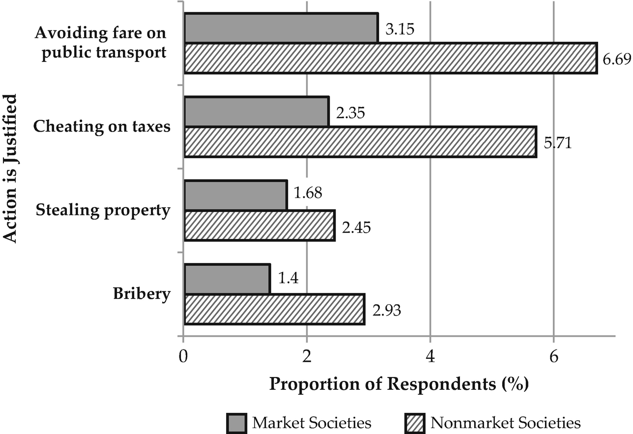 Figure 3. Market versus nonmarket societies on dishonest behavior