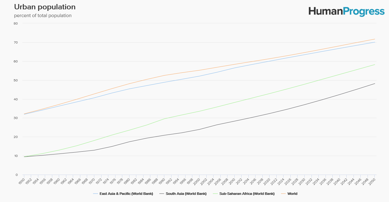 Increasing urbanization may not sound like a particularly positive and newsworthy trend. In fact, cities are the engines of human liberation and economic growth. Urbanization is also good for the planet, for people in the cities have a smaller environmental footprint than people in the countryside. As such, it should be welcomed and encouraged.
