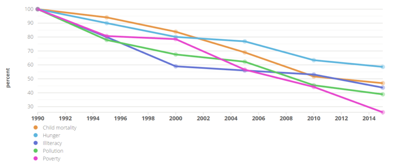 Source: Glocalities Global Poverty Survey by Dutch research firm Motivaction to help bridge the gap between public perceptions and reality, here are five charts, based on data we’ve collected at HumanProgress.org, that illustrate the extraordinary progress humanity has made.